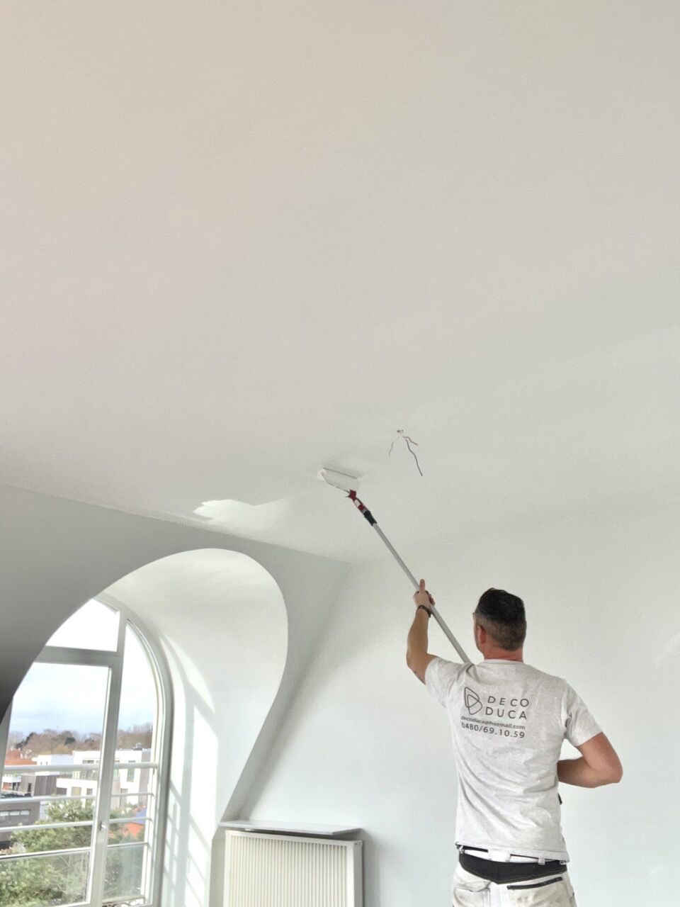 Opfrissen van muren en plafond in appartement.