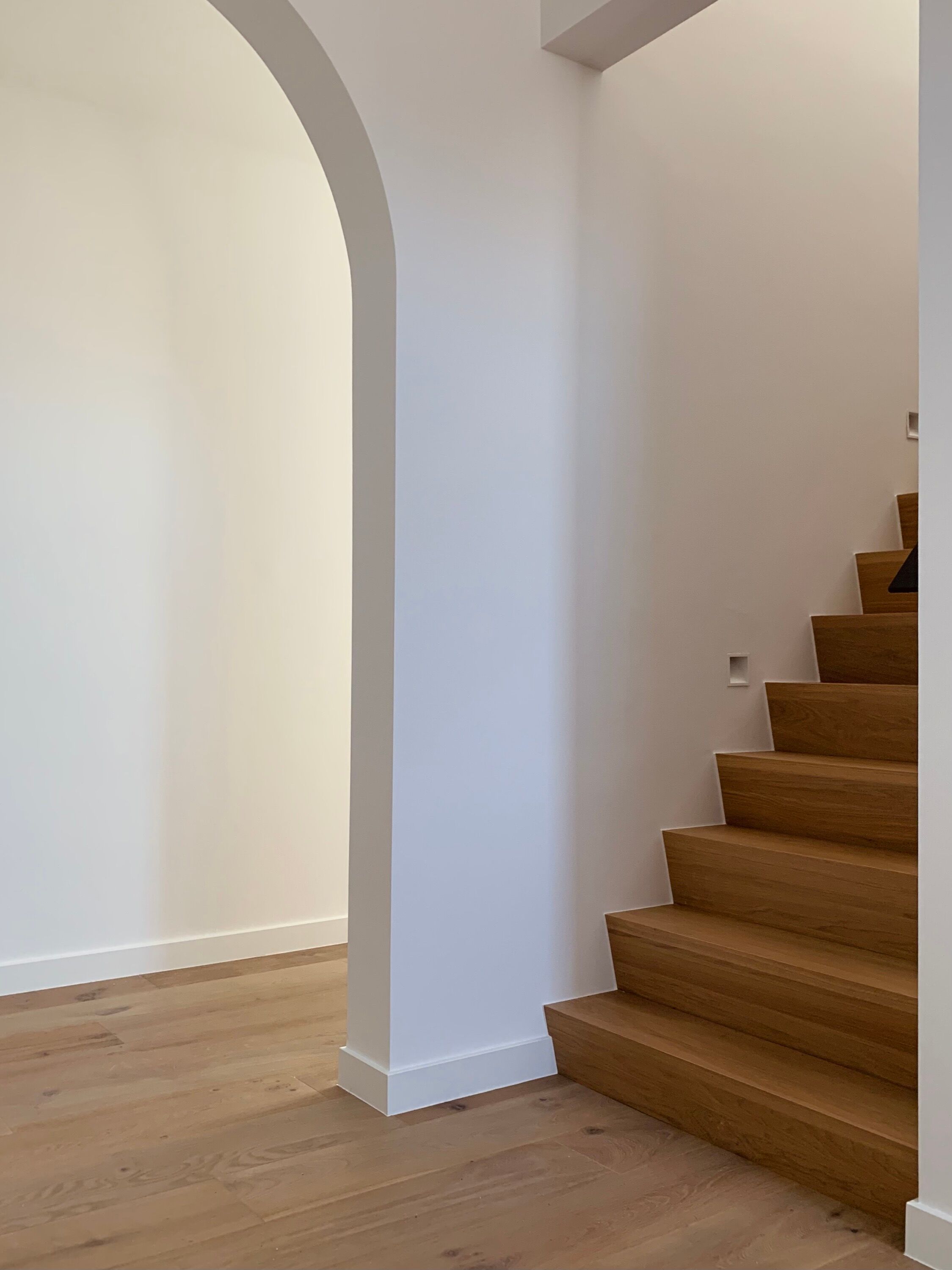 Deze prachtige woning werd afgewerkt in lichte kleuren en een opvallend behang als ene-catcher